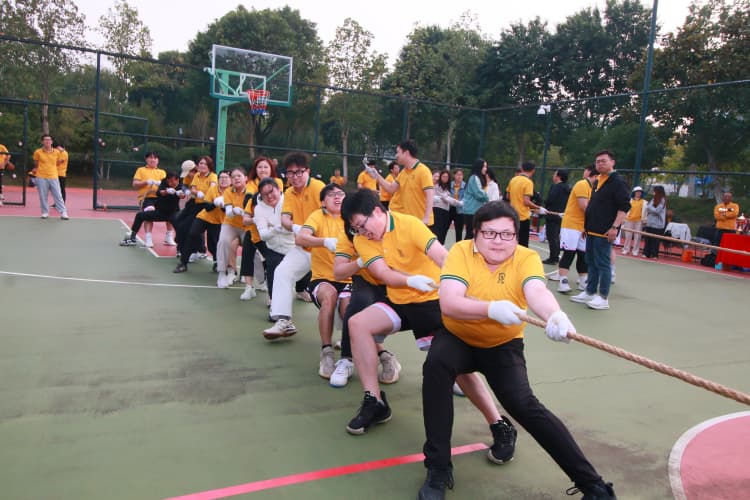 第二環(huán)節(jié)的男子籃球賽更是精彩紛呈。球員們在球場上奔跑、跳躍、傳球、投籃,每一個動作都充滿力量與激情。場上選手你爭我奪,場邊啦啦隊熱情助威,歡呼聲與吶喊聲此起彼伏,將比賽氛圍推向高潮?;@球賽不僅是一場競技對決,更是團隊凝聚力與公司精神風(fēng)貌的生動體現(xiàn)。